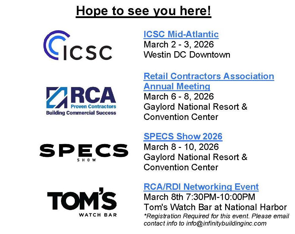 We hope to meet with you at ICSC Mid-Atlantic, RCA Annual Conference, and SPECS Conference.